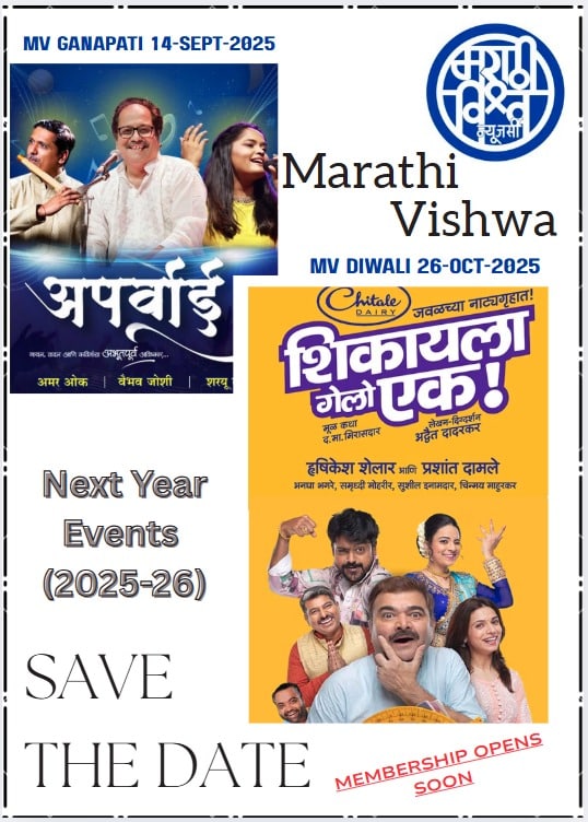 Note: Marathi Vishwa might charge an additional $5.00 per person non-refundable RSVP to ensure accurate attendance and make the best judgement for food count and avoid waste.